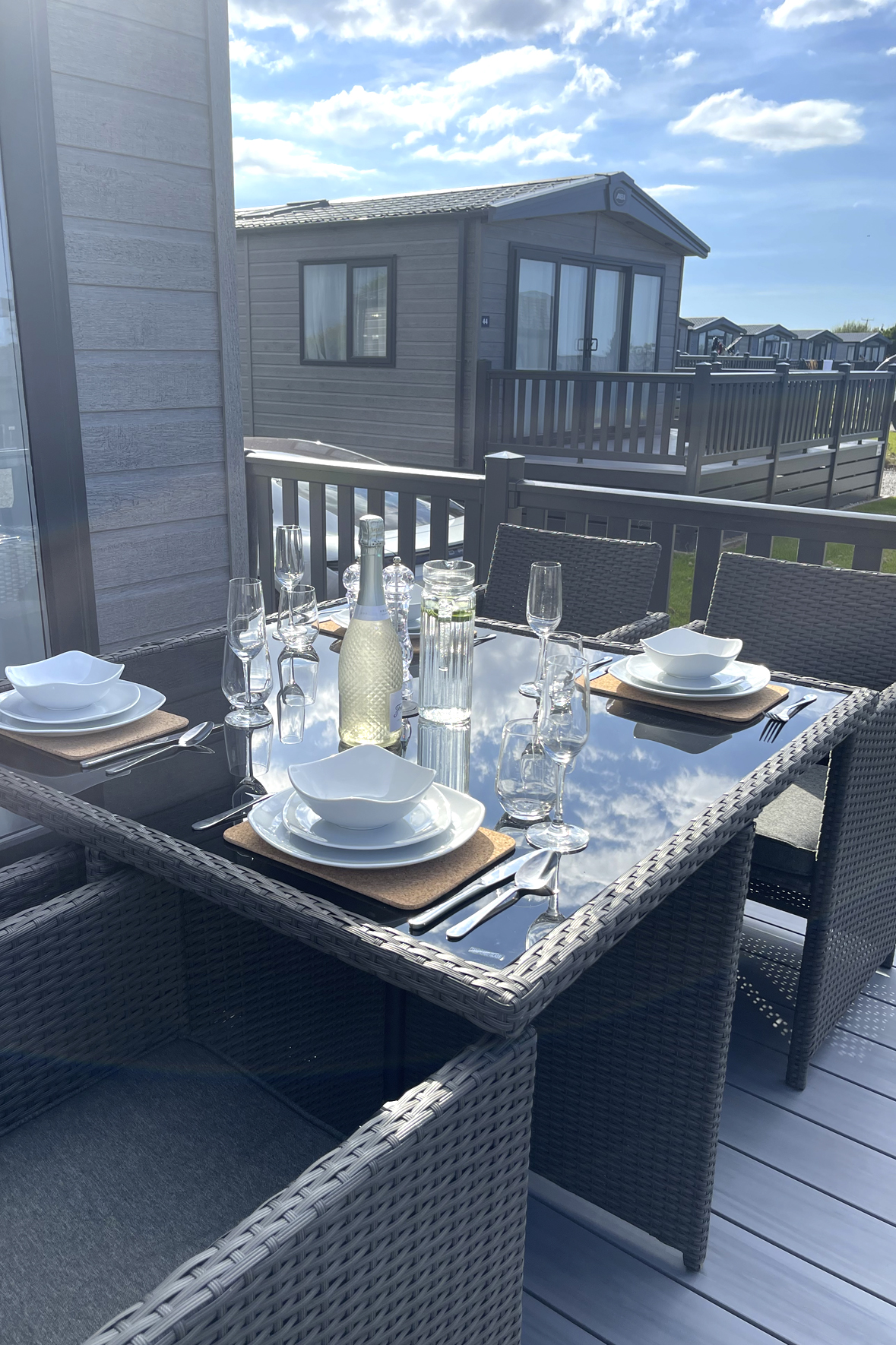 - Outdoor furniture includes a table and 4 chairs to soak up the early morning sun and evening rays. A perfect place to dine, sit back and relax with a book or to simple watch the world go by.